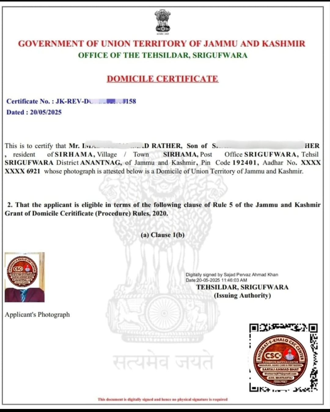 Domicile Certificates Now Digitally Issued Across J&K: CSC Nipora Assisting Applicants from All Districts